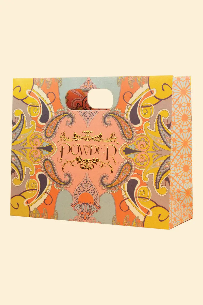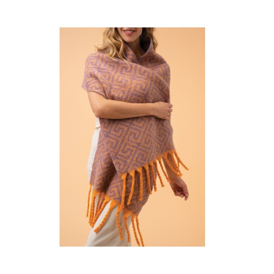 Superb oversized Athena Tangerine / Lavandere scarf from Powder UK. With its Greek geometric patterns, it's a whirlwind of softness to warm you up!