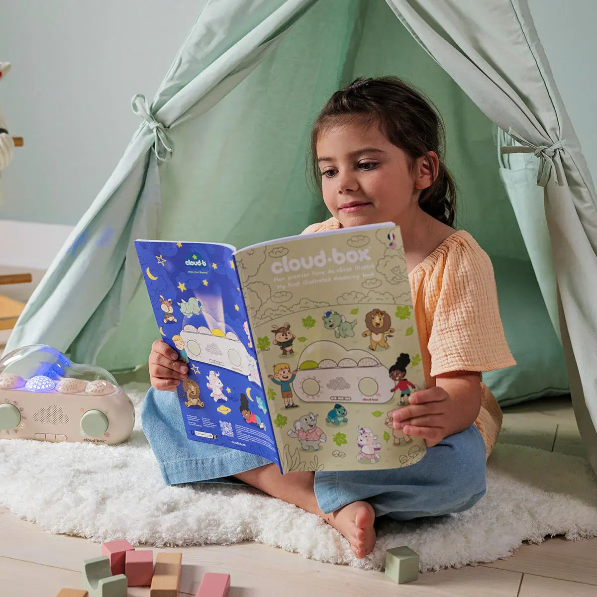 The CloudBox lets you listen to 36 different stories, 8 white noises and 8 melodies. You can also record your own stories.