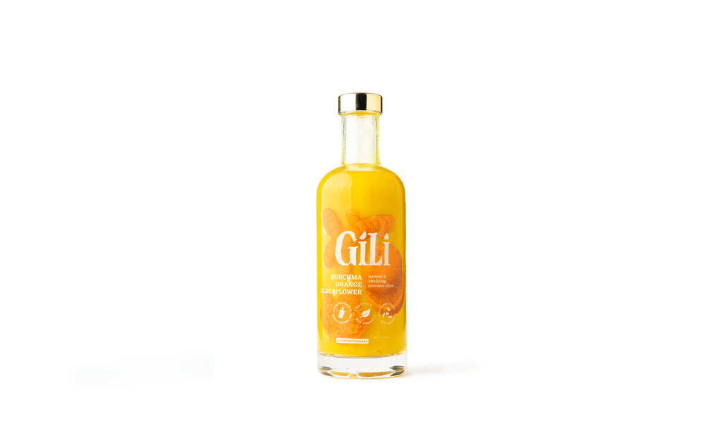 Ingredients: Turmeric*, Pineapple*, Elderflower*, Agave*, Ginger*, Lemon*, Water, Pepper*, Vitamin C*, Ginseng* (*ORGANIC). VEGAN.