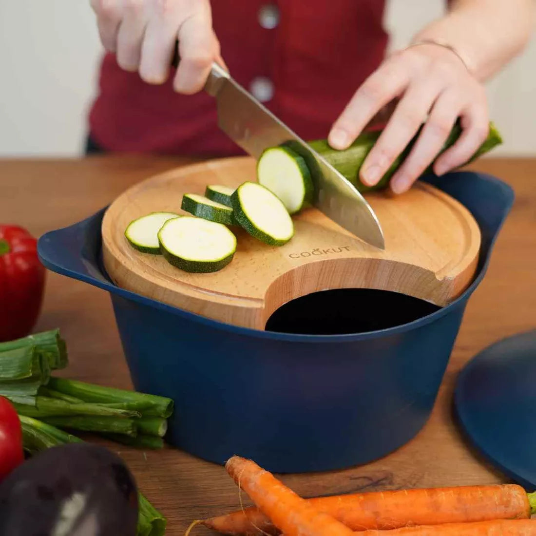 Cutting food: When chopping other foods, such as vegetables or herbs, the board allows you to easily drop them into the Cocotte, simplifying the preparation of your dishes.