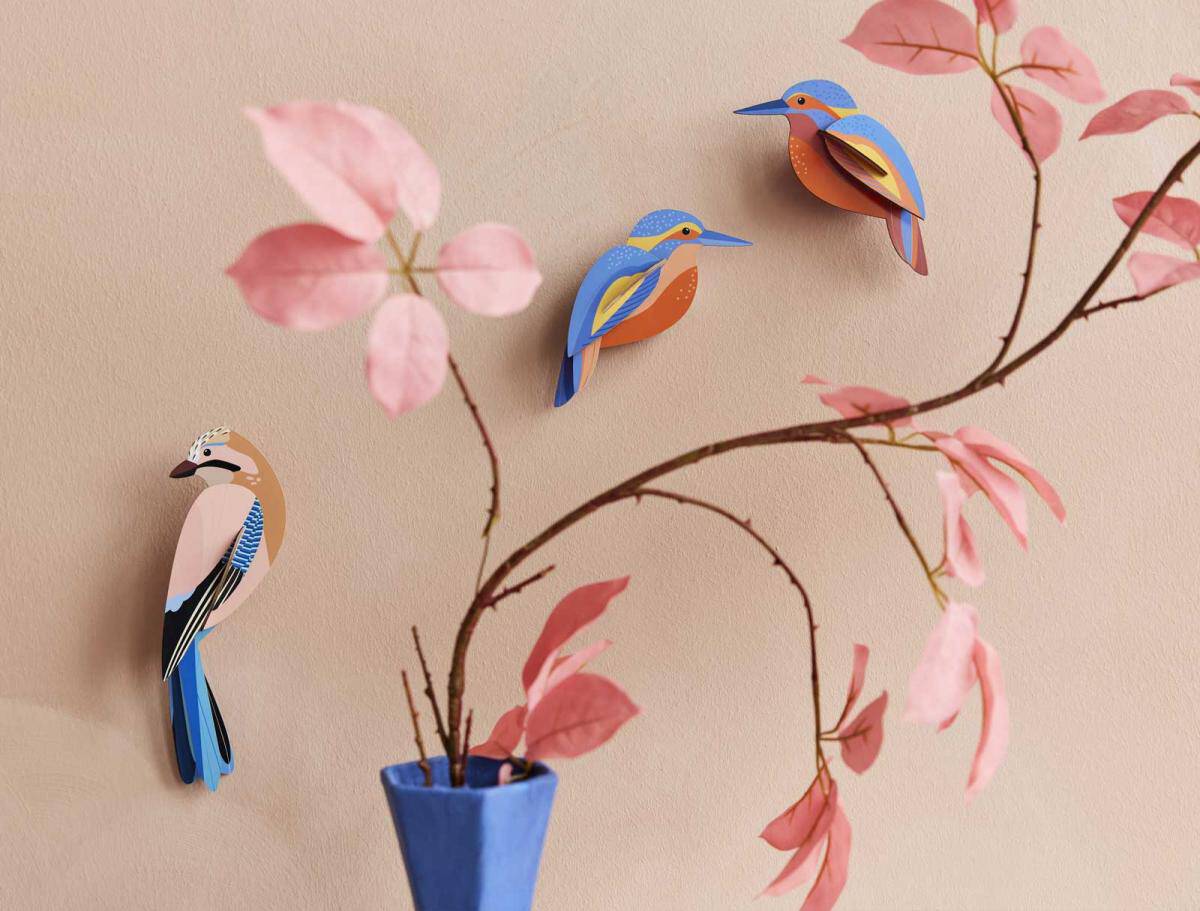 Discover Studio Roof's new "Les Oiseaux du Jardin" collection. Inspired by the birds that brighten our daily lives, these little cardboard companions bring a touch of color and nature to your home. Attached to the wall, they'll stay perched, adding a poetic and joyful touch to your decor, without ever flying away!