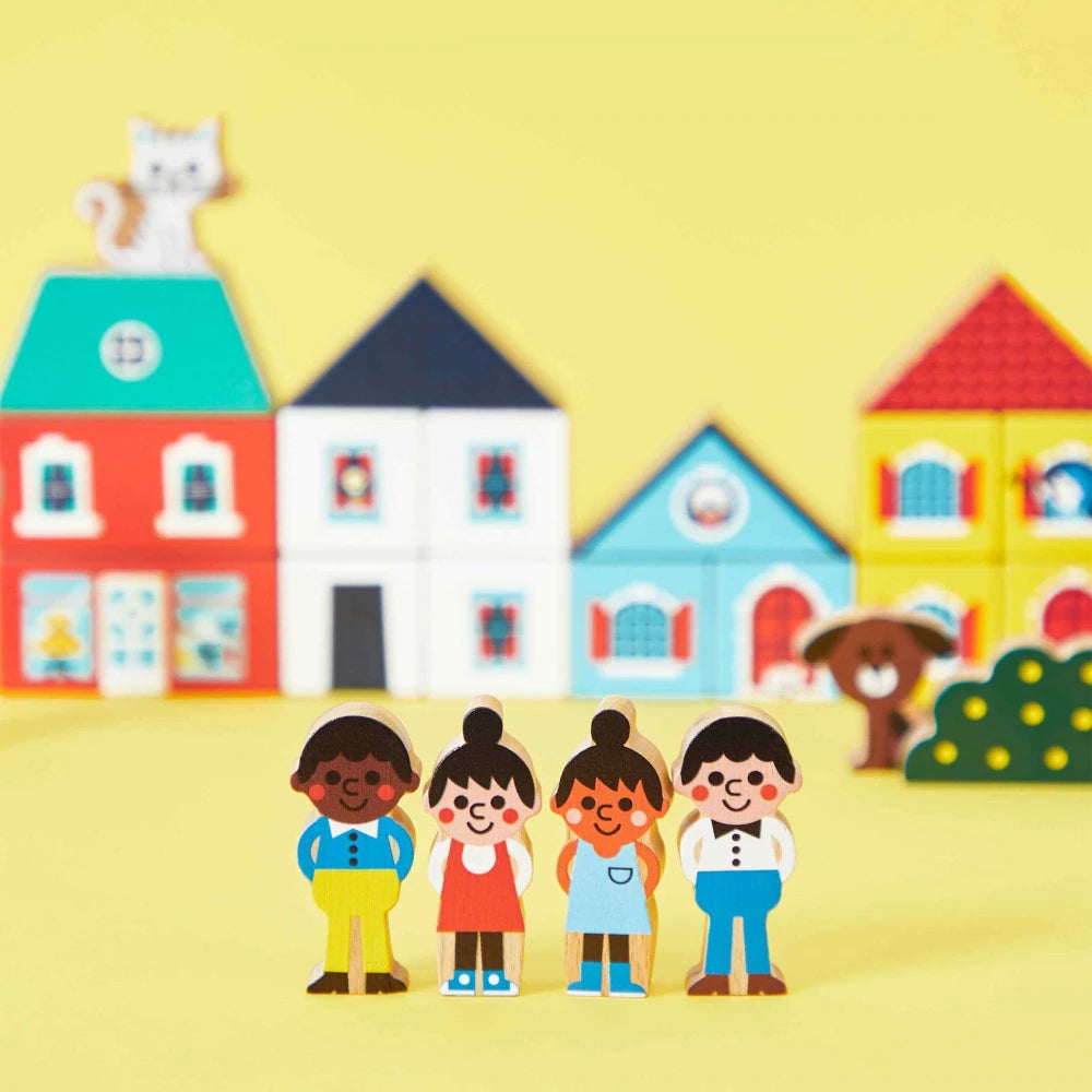 Met deze leuke set van 30 houten kubussen en 6 figuurtjes kunnen kinderen hun creativiteit, verbeelding en behendigheid ontwikkelen terwijl ze eindeloos bouwen. De allerkleinsten zijn dol op stapelen, terwijl oudere kinderen spannende verhalen bedenken in zachte en kleurrijke werelden.