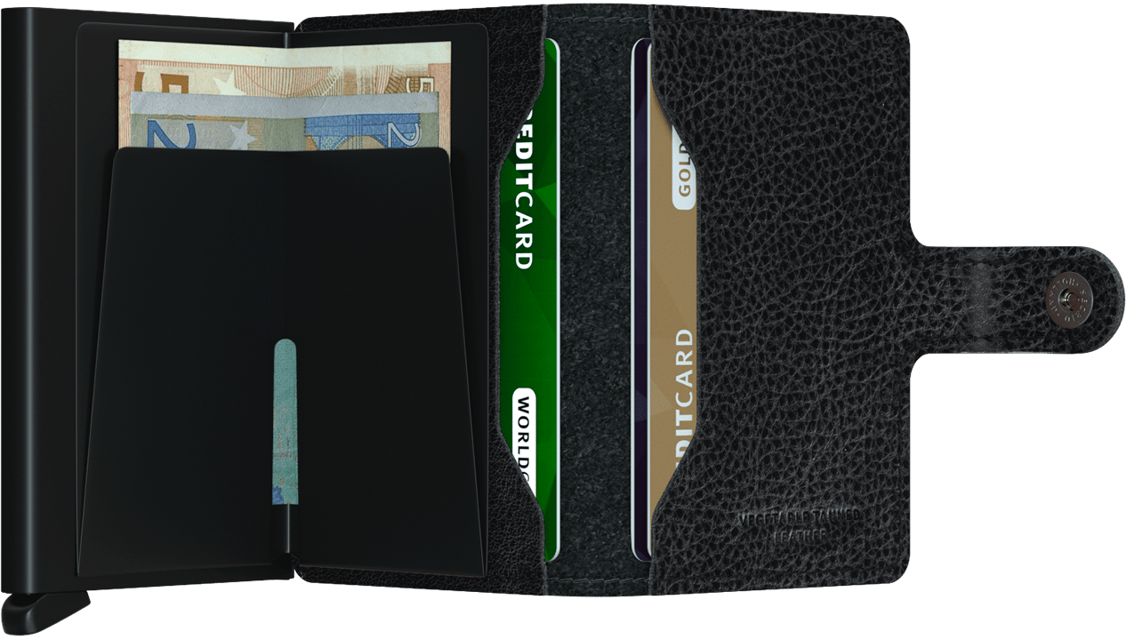 De Secrid miniwallet is de praktische oplossing die je overal mee naartoe kunt nemen. Hij biedt volledige veiligheid dankzij de "Cardprotector" die voorkomt dat je gegevens worden gestolen. De "Veg"-serie maakt gebruik van plantaardige looiprocessen. De Secrid miniwallet van zwart veganistisch leer biedt plaats aan 10 pasjes, is RFID-beschermd en is duurzaam en compact.