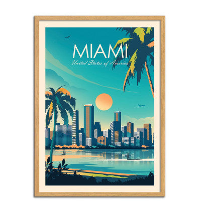 Studio Inception maakt Travel Posters van iconische steden over de hele wereld. Hier Miami in Florida, in deze prachtige kleur.