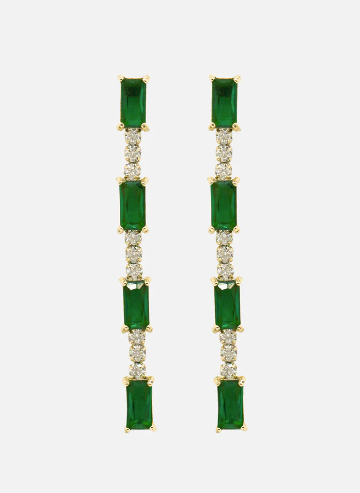 Deze 4,5 cm lange oorbellen combineren verfijning en helderheid. De rechthoekige groene zirkoon, gevolgd door drie kleine witte zirkonia's, zorgt voor een subtiel en elegant contrast. Gemaakt van roestvrij staal en verguld met 18-karaats goud, voegen ze een vleugje glans toe aan je look met lichtheid en verfijning. 💚🤍