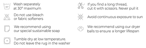 - Zorg ervoor dat je de filters in je wasmachine en droger na gebruik schoonmaakt, want wollen tapijten geven normaal gesproken vezels af.