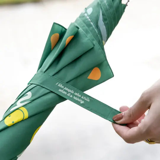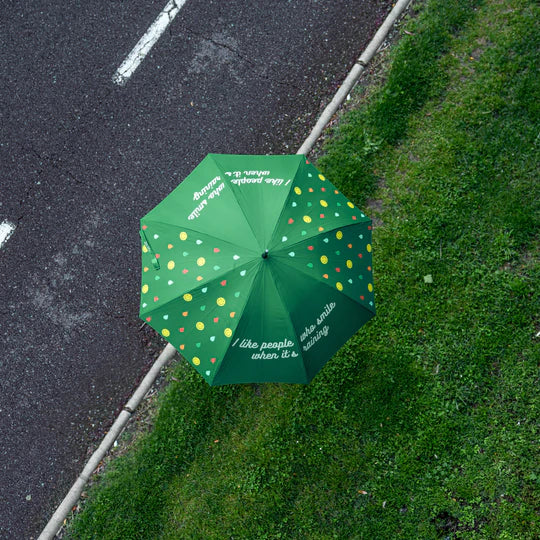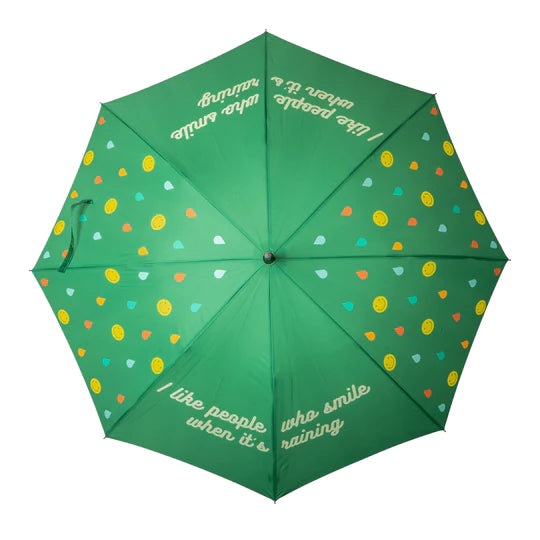 Laat de regen je plannen niet verpesten! Pak je paraplu en ga op pad om de wereld in de regen te veroveren. Met de boodschap "I Like People Who Smile When It's Raining" breng je humor in grijze dagen.