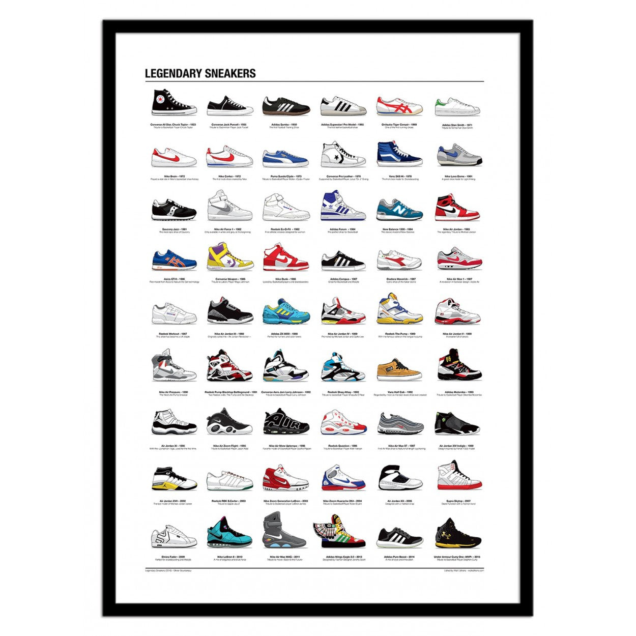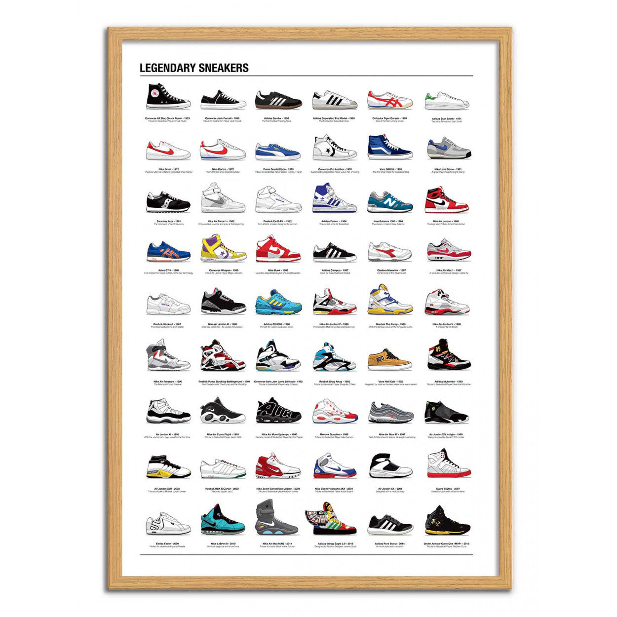 Au travers de ses compositions novatrices et contemporaines, l'illustrateur Olivier Bourdereau allie informations encyclopédiques et design. Ici, il répertorie les baskets qui ont marqué l'histoire de la célèbre chaussure de sport.