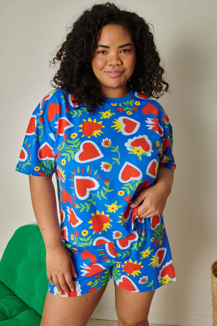 T-shirt oversize, short bien coupé, coton bio doux mais costaud : le combo rêvé pour chiller, dormir, danser dans la cuisine ou finir la saison en une nuit (oui, encore).