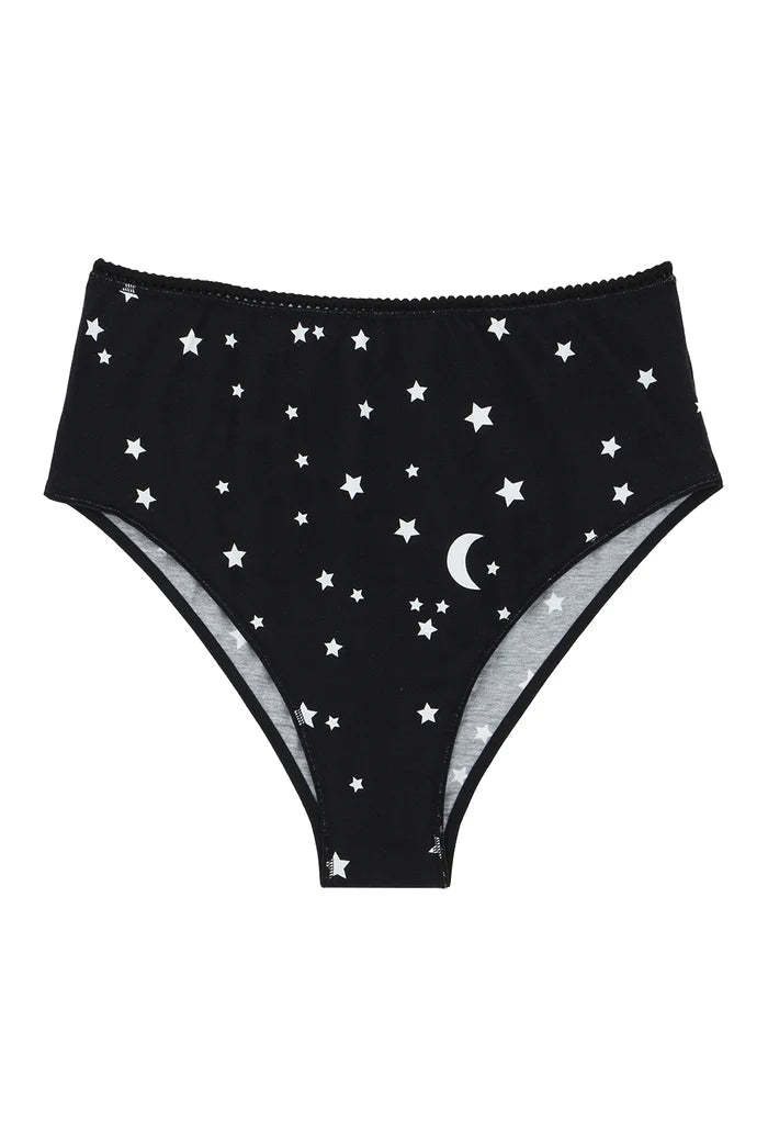 Culotte Taille Haute en Coton Bio Noir étoiles