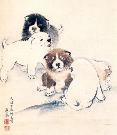 The origin of Kawaii most likely dates back to the Edo period. Puppies, by Maruyama Okyo (1733–1795, Edo period)