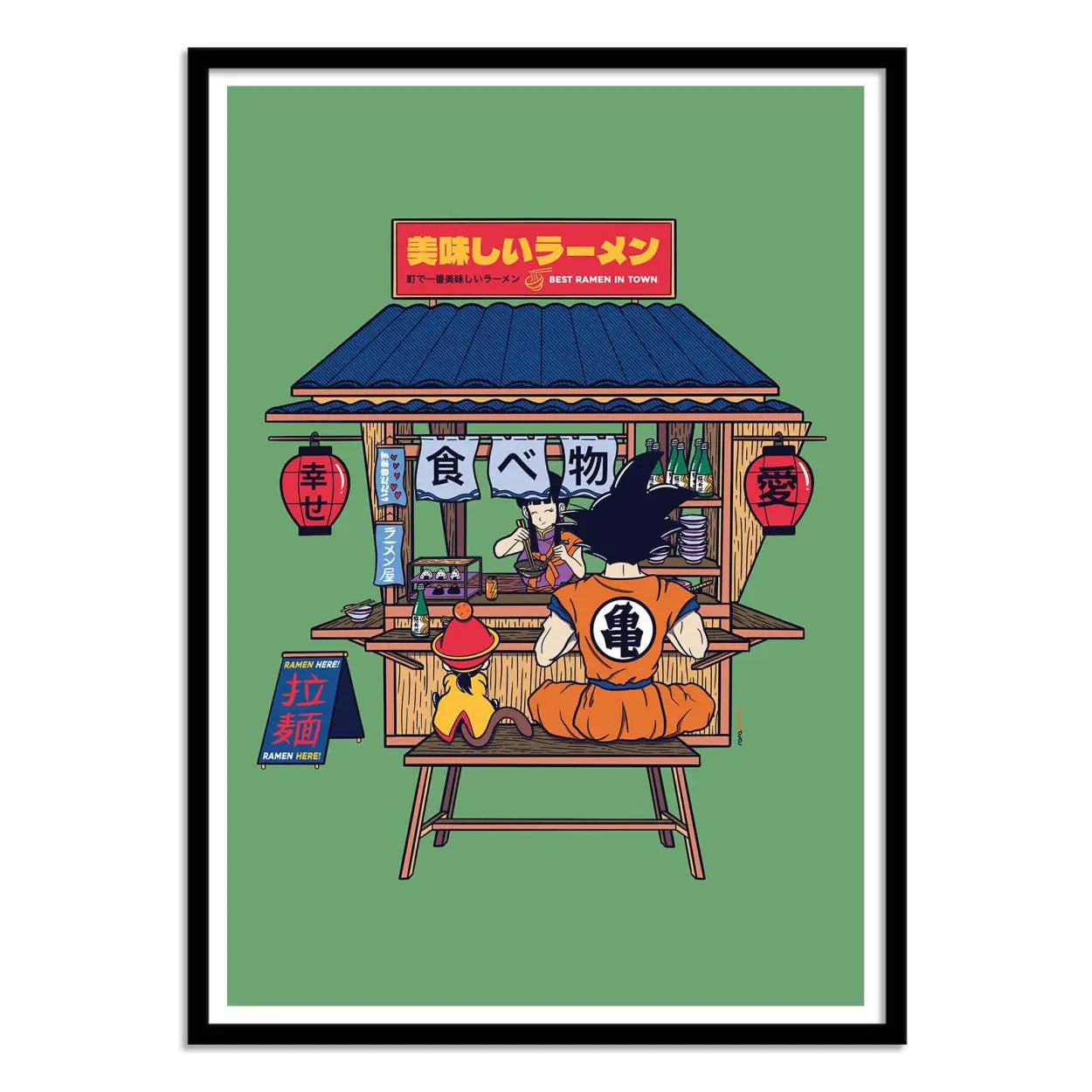 Every detail of this artwork celebrates both Japanese culinary culture and the endearing spirit of the legendary characters from Dragon Ball. Perfect for decorating a wall , this poster will appeal to fans of manga, pop culture, and anyone who loves adding a touch of whimsy and color to their home.