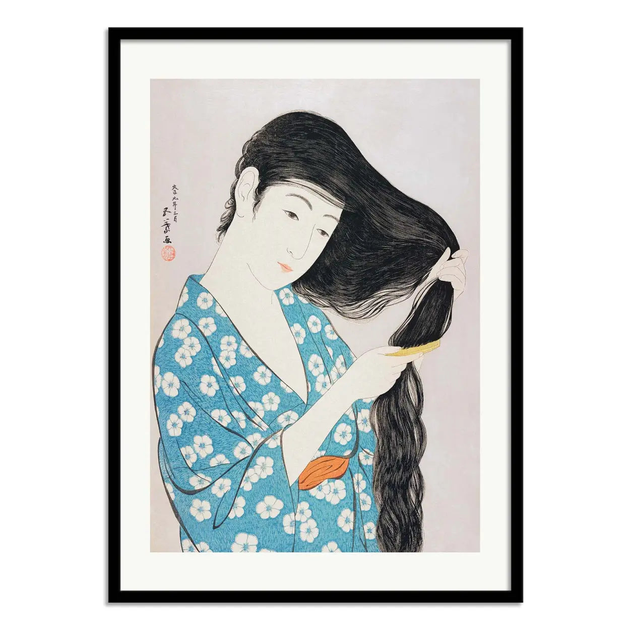 "Woman Combing her Hair" poster by Goyo Hashiguchi by Pictufy, a poetic and refined work that brings elegance and serenity to your interior.