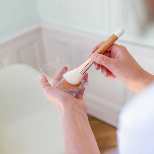 Handcrafted with a natural wood handle and non-animal, non-allergenic Taklon fibers, this brush is a perfect addition to your makeup routine. Its 15.5 cm size guarantees a comfortable grip for a professional application at home!