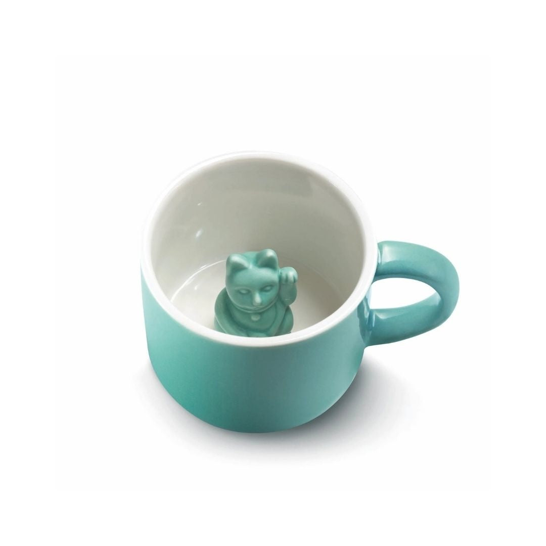 A ceramic lucky cup with a cat taking a bath inside. Fun and design, it will make you smile in the morning and bring you luck!