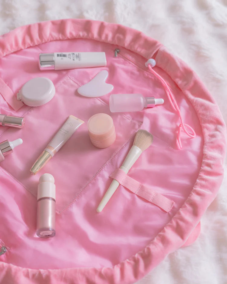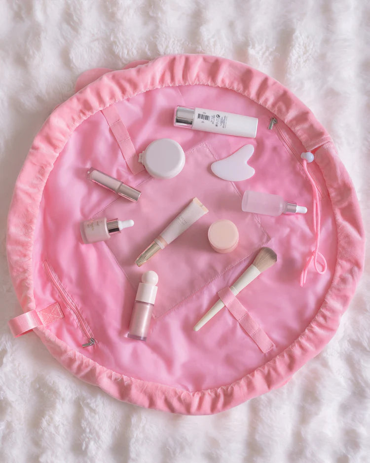 Perfect for travel or at home, this pink shell-shaped case opens completely to reveal all its contents. Thanks to its many compartments and adjustable cord, it combines organization and originality, while remaining ultra-practical for beauty fans.