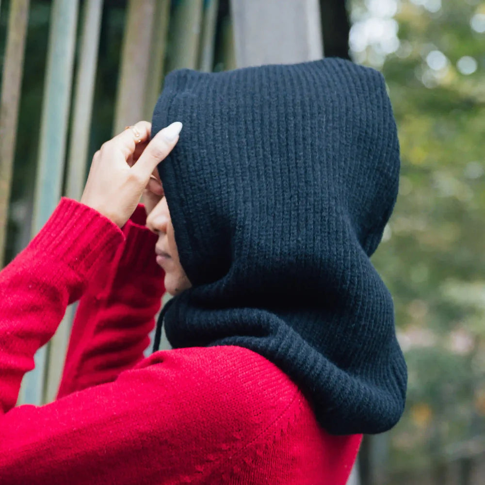 Black and stylish, it covers your head, neck, and face to keep you warm even when the temperature drops ❄️. Perfect for those who don't like facing the cold unprotected!