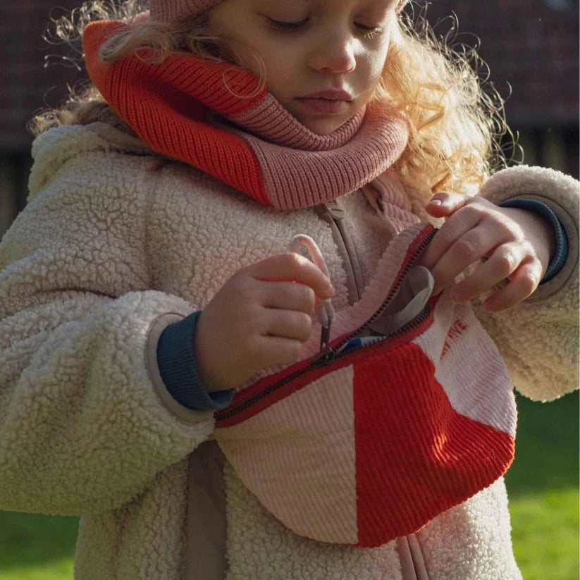 Designed for little adventurers, the Chamaye children's velvet bum bag comes in pink and orange for a cheerful and sparkling touch 🎒✨. With its High Five embroidery, it becomes the perfect accessory to follow mom or dad in complete complicity.