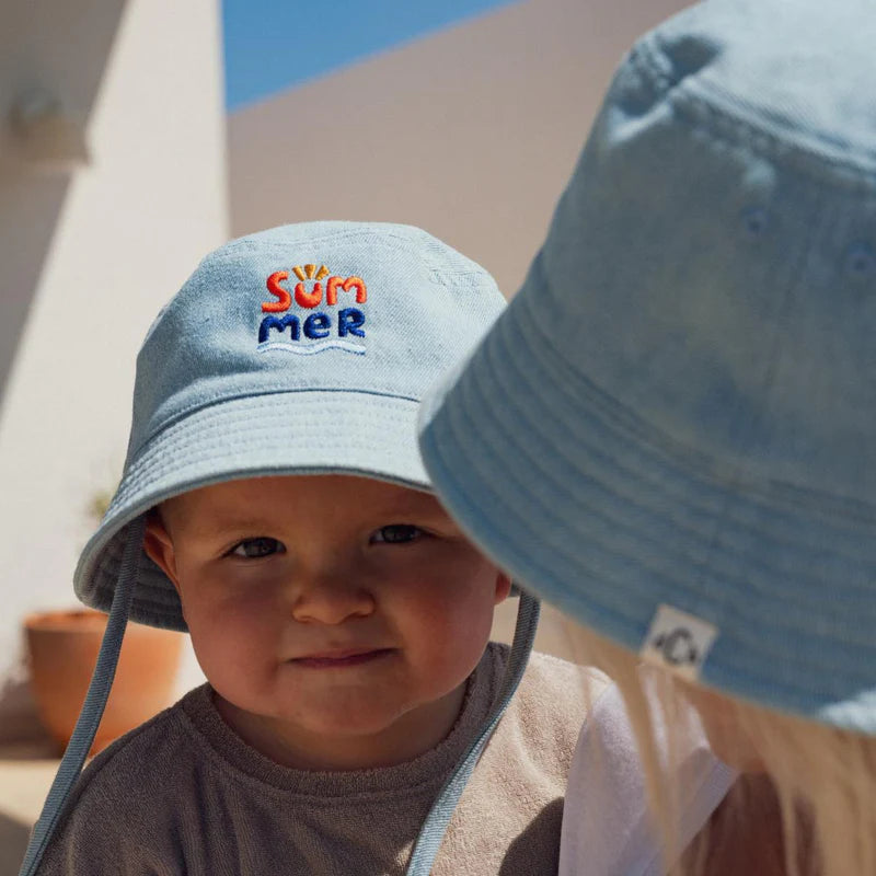 The Chamaye Summer bucket hat is the perfect accessory for kids who love summer and style! Made from lightweight, reversible denim, it's perfect for everyday wear, from daycare to summer vacation.
