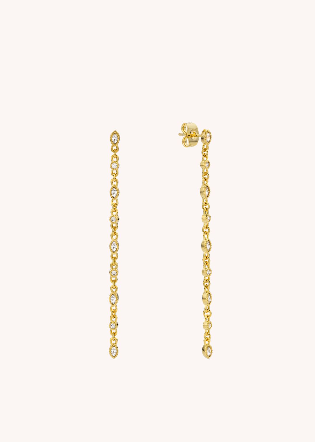 MYA-BAY's Awesome Infinity River collection embodies grace and fluidity through a sophisticated, wavy design. These earrings, gilded with 24-karat recycled fine gold, are inspired by the eternal movement of water, offering an elegant and airy silhouette. Their length enhances the carriage of the head and catches the light with each movement, bringing a dramatic touch to your look.