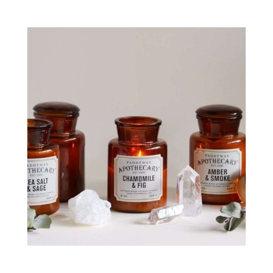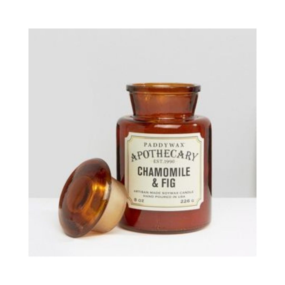 Paddywax Apothecary scented candle, a sweet scent of chamomile mixed with the deliciousness of fig! Natural Soy Wax - Apothecary Amber Candle