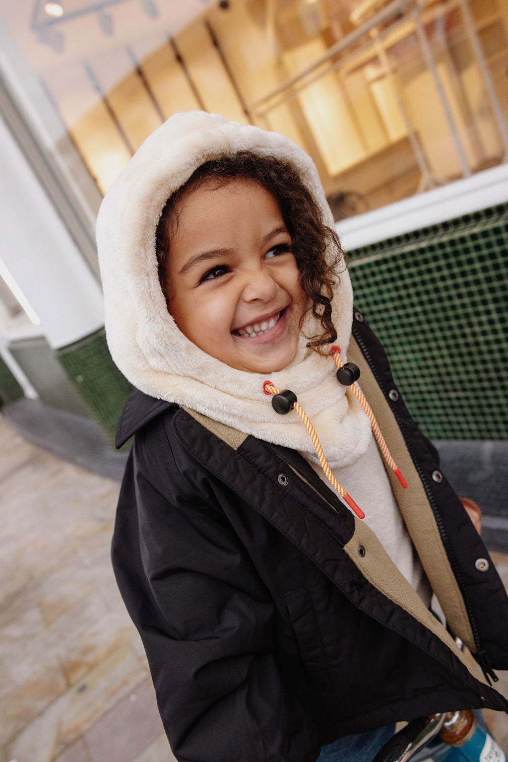 The Warmy Mauve Hello Hossy balaclava brings a soft and original touch with its pretty pastel purple 💜. Warm and soft thanks to its fleece lining, it protects kids from the cold in style.