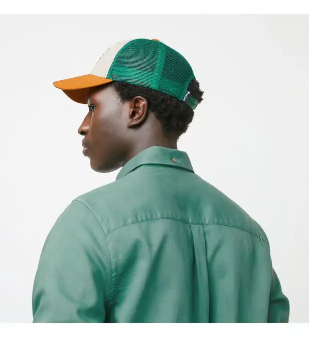 Inspired by vintage trucker style , it combines a cotton twill front with a breathable mesh back , ensuring optimal ventilation on sunny days.
