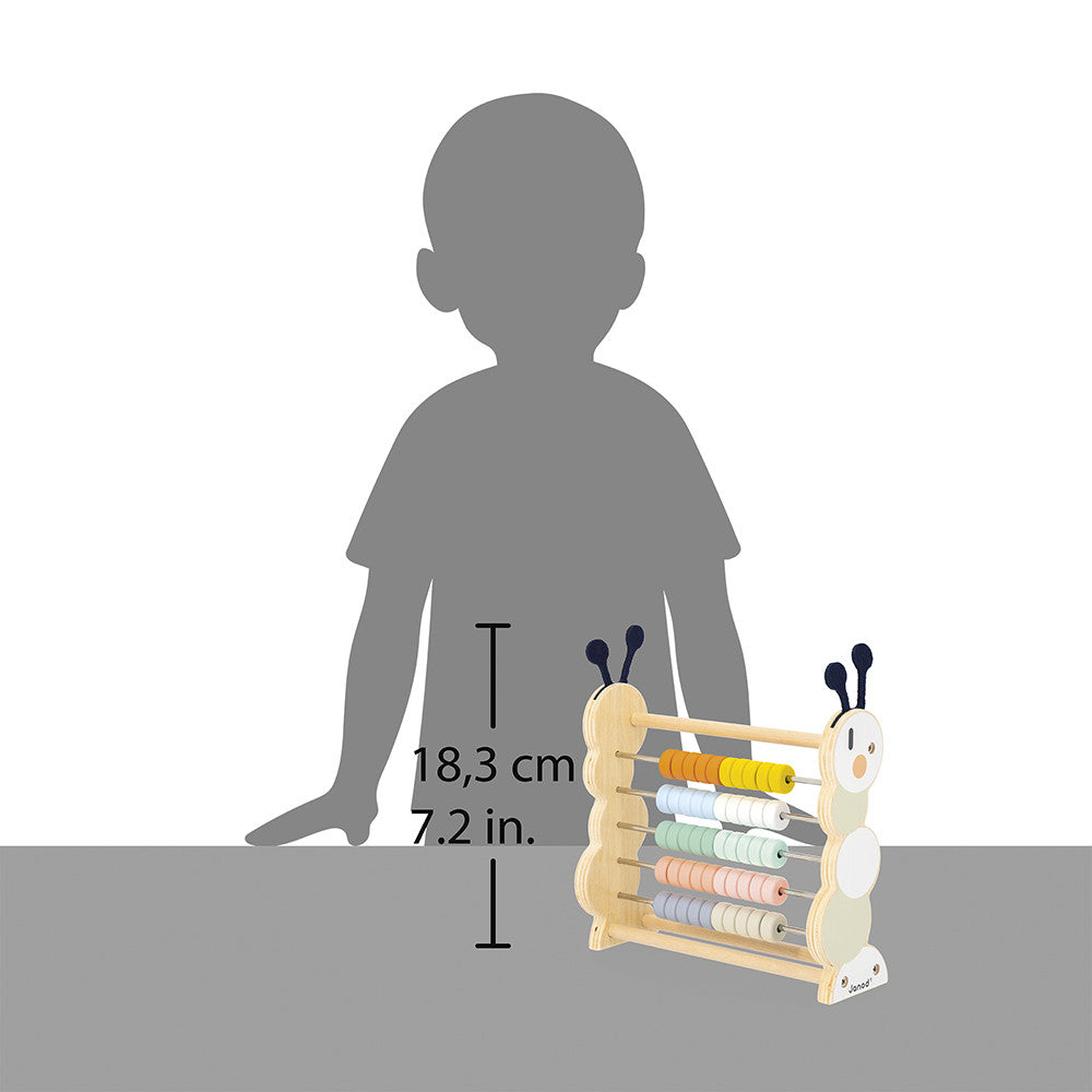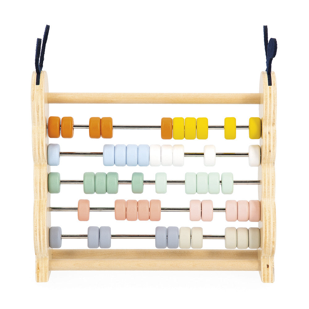 With its soft colours and rounded design, this wooden abacus accompanies children from 18 months in their first discoveries... and well beyond!