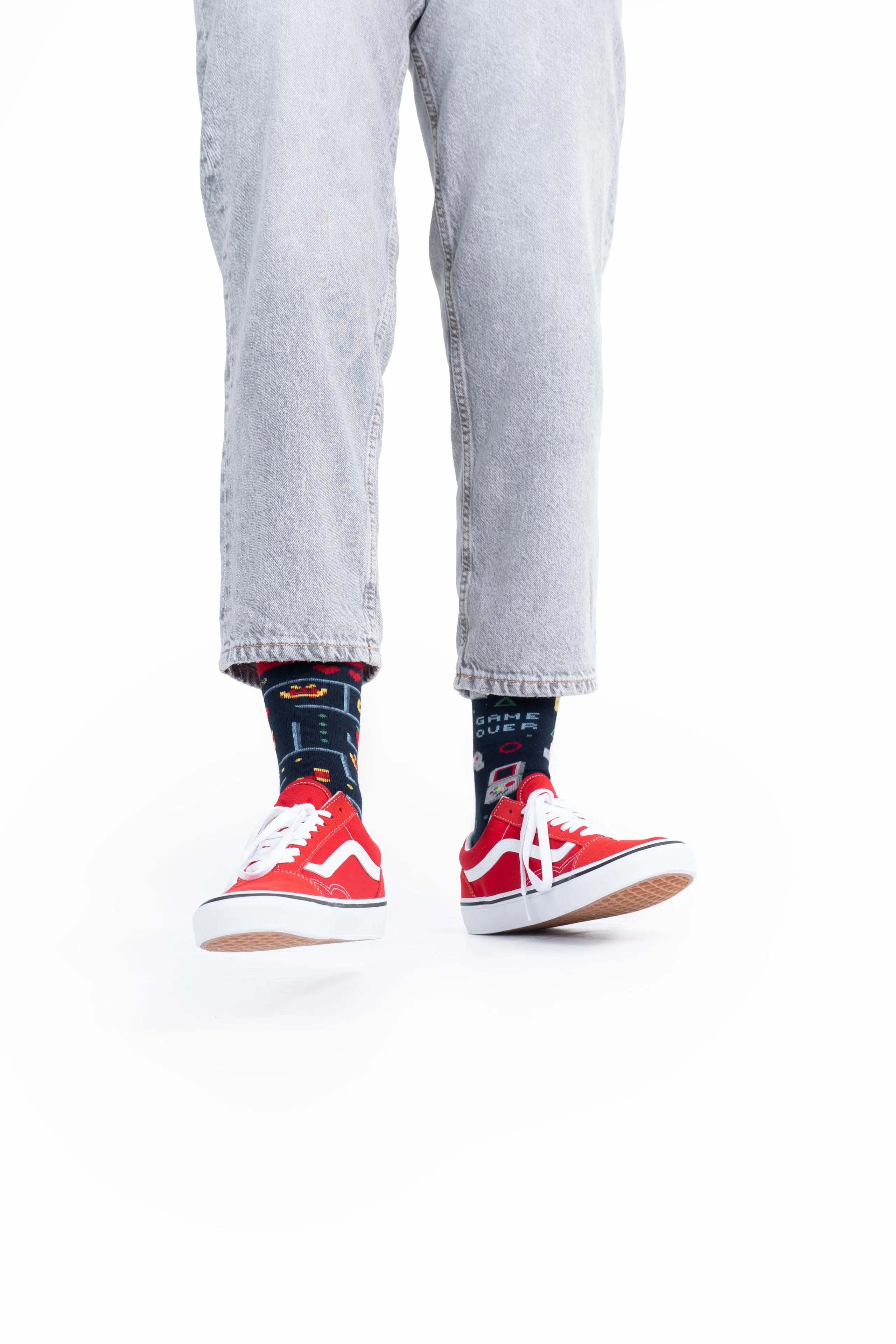 Game Over socks are the ultimate power-up for retro gaming fans! Pixels, controllers, mazes, and a "game over" on the heel: a perfect homage to the 90s. Start → style → win.