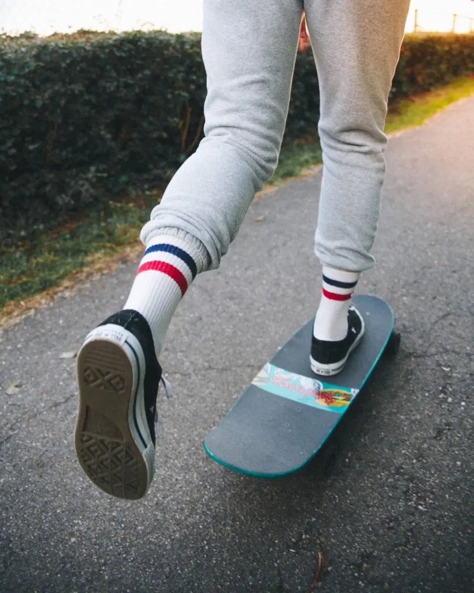 The Off-White Red and Navy Sports Socks are designed for sports and fashion lovers. Their red, navy, and off-white color combination offers a dynamic look, while their design ensures optimal comfort during exercise.
