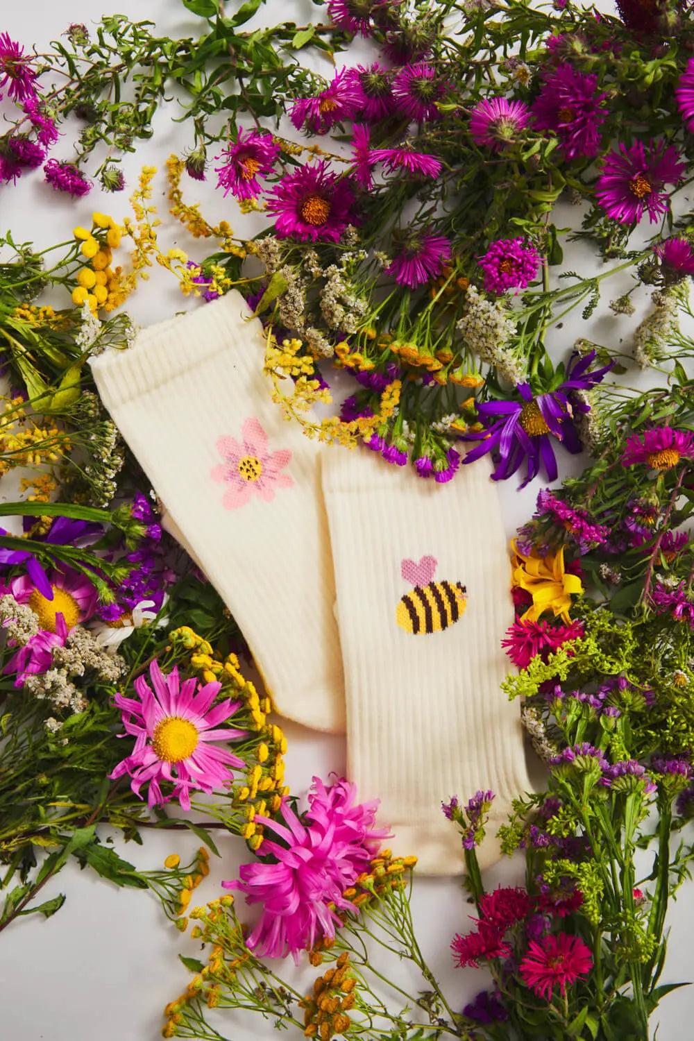 A touch of softness, a touch of energy, and a whole lot of good cheer: Bussy Bee sports socks celebrate the perfect harmony between two complementary forces . Like the best collaborations, this duo works wonderfully: a balance between softness, chaos, and lightness .