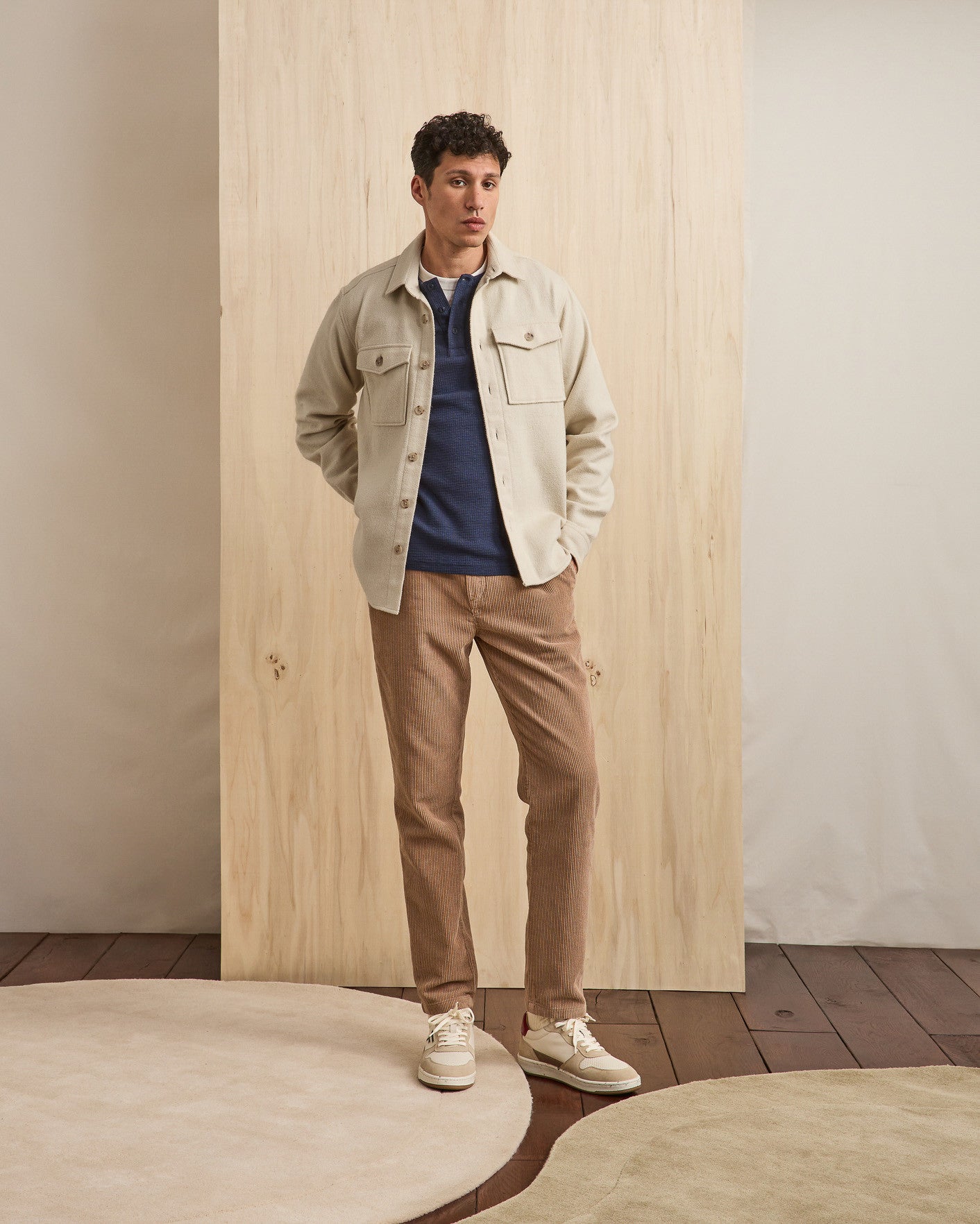 Faguo's dark beige FLAVIGNY overshirt is designed to combine comfort and style. Its slightly oversized, straight cut creates a relaxed, modern look, perfect for wearing alone or layered. Made from thick, soft cotton, it's perfect for cool days and casual looks.