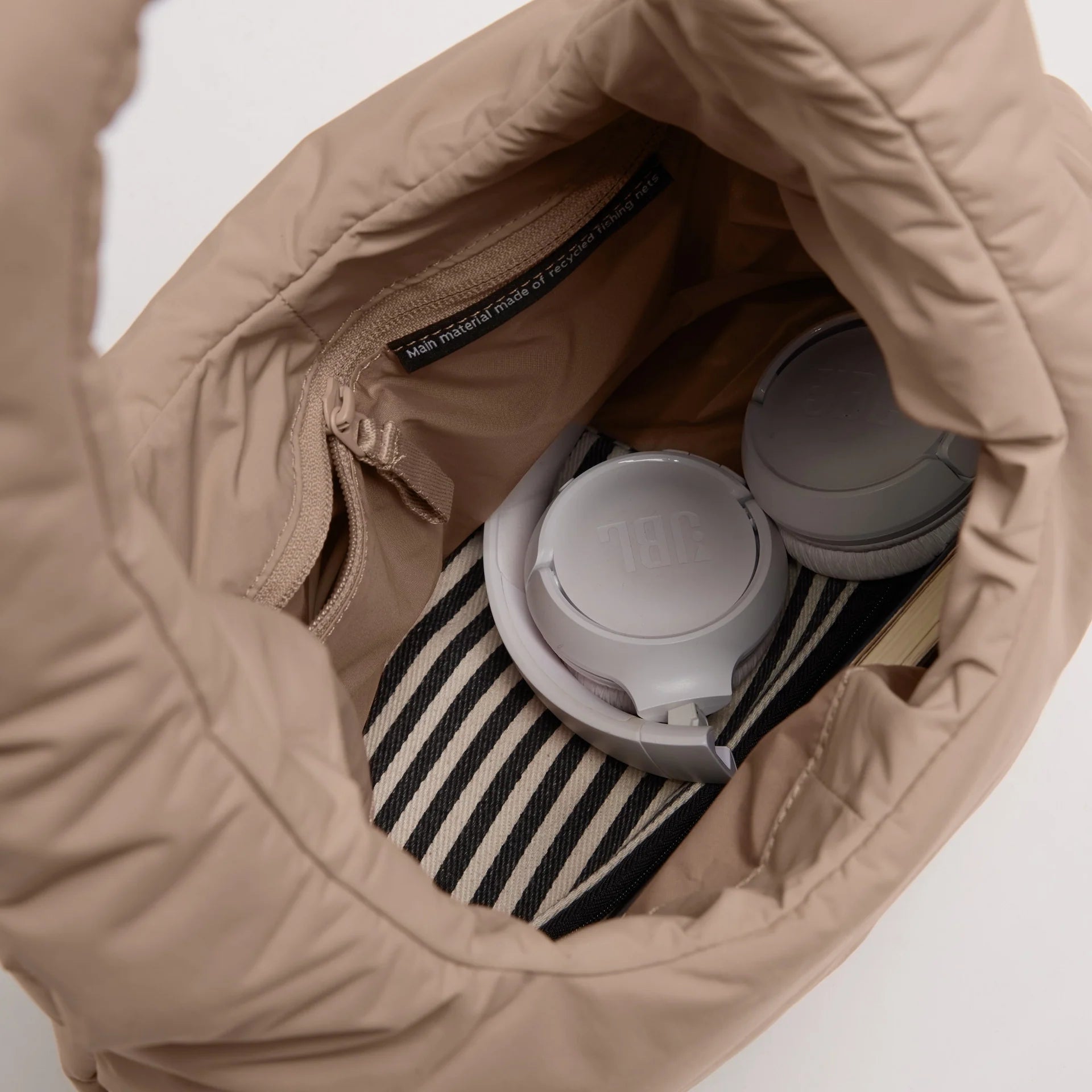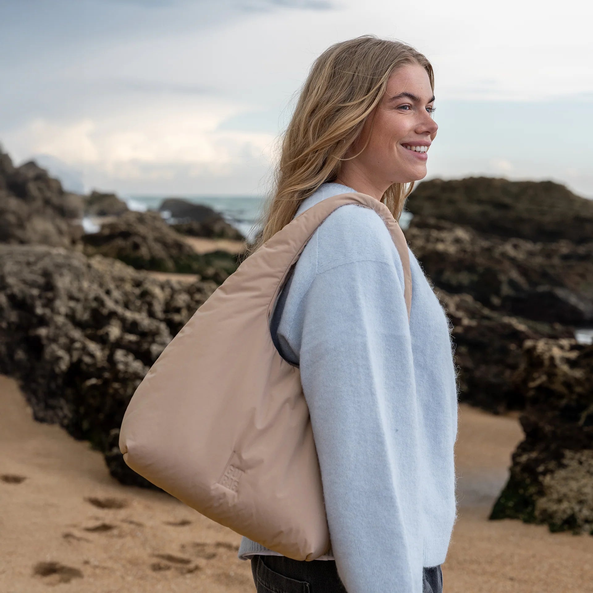 Soft, stylish, and super lightweight, the Cloud Shoulder Bag is the perfect accessory for those who like to travel light... and purposefully. Made from recycled fishing nets, it features a sleek design, a discreet magnetic closure, and a soft, cloud-like feel. Inside, there's a zippered pocket to keep your essentials securely in place. In short, a bag that makes you want to get some fresh air without ever losing its style.