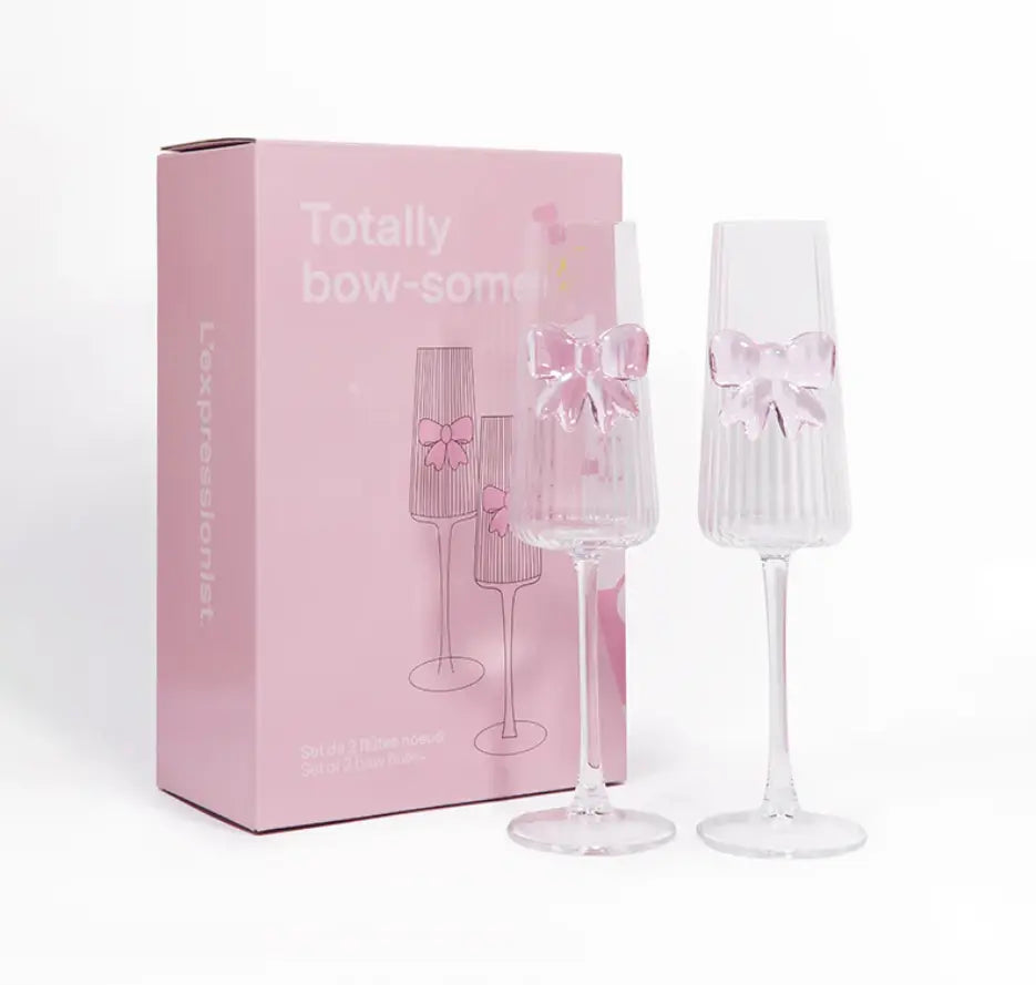 Celebrate special moments in style with this set of two sparkling wine flutes adorned with a delicate bow. Chic, romantic, and subtly flirty, they transform every toast into a memorable and festive occasion.