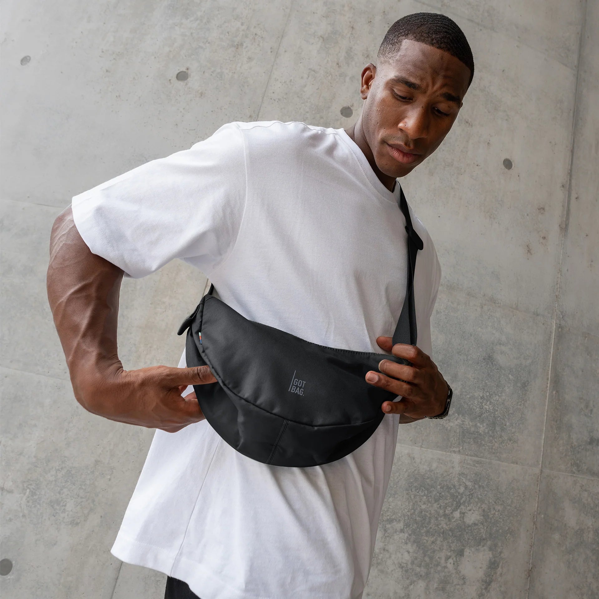 Small size, big impact 🌍 The Moon Bag Small is the mini (but maxi-stylish) version of the iconic GOT BAG bag. Lightweight, practical, and ultra-soft to the touch, it holds the essentials for a city trip, a concert, or a hands-free stroll. Its curved design and water-resistant recycled fabric make it an eco-friendly companion that can be carried anywhere—without sacrificing style.