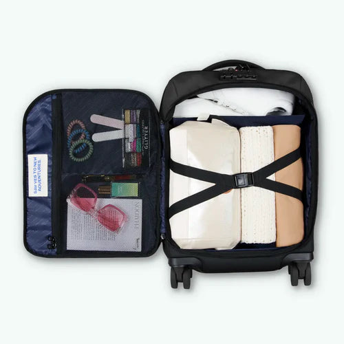 Made from durable 900D nylon , this cabin suitcase offers great strength while remaining lightweight. It includes a padded compartment for a 17″ laptop , a front zipped pocket for documents , and an expandable side pocket for a water bottle or accessory. Side compression straps ensure optimal storage.