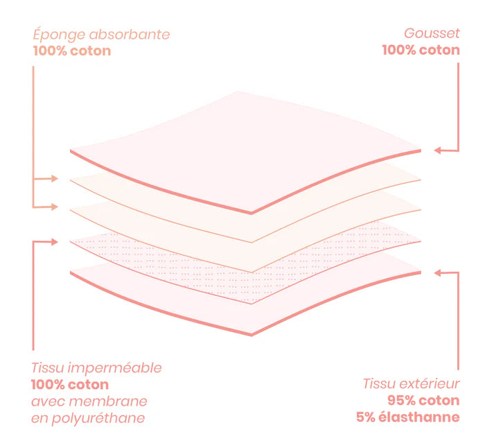 Developed with CETI (European Centre for Innovative Textiles), these panties offer true everyday comfort while freeing you from disposable pads. No itchy pads, no misplaced tampons, no stress. Just you, feeling good in your body.