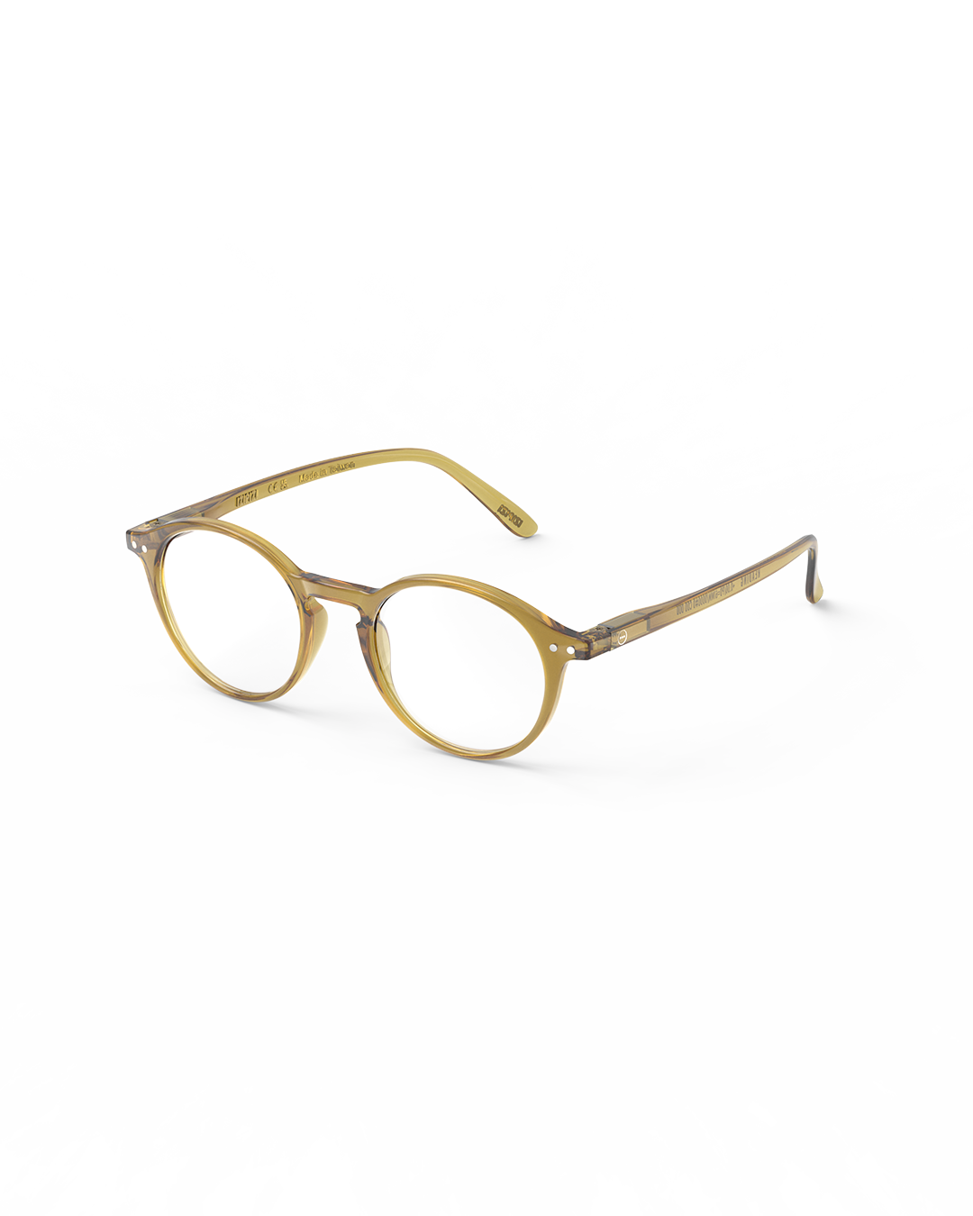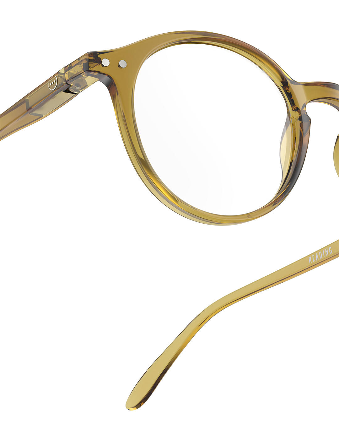 Discover reading glasses for presbyopia. The #D model stands out for its round, timeless shape and best-seller status. Universal and unisex, these glasses can be adapted to any face. The frame combines the brilliance of crystal with high-quality bio-sourced materials.