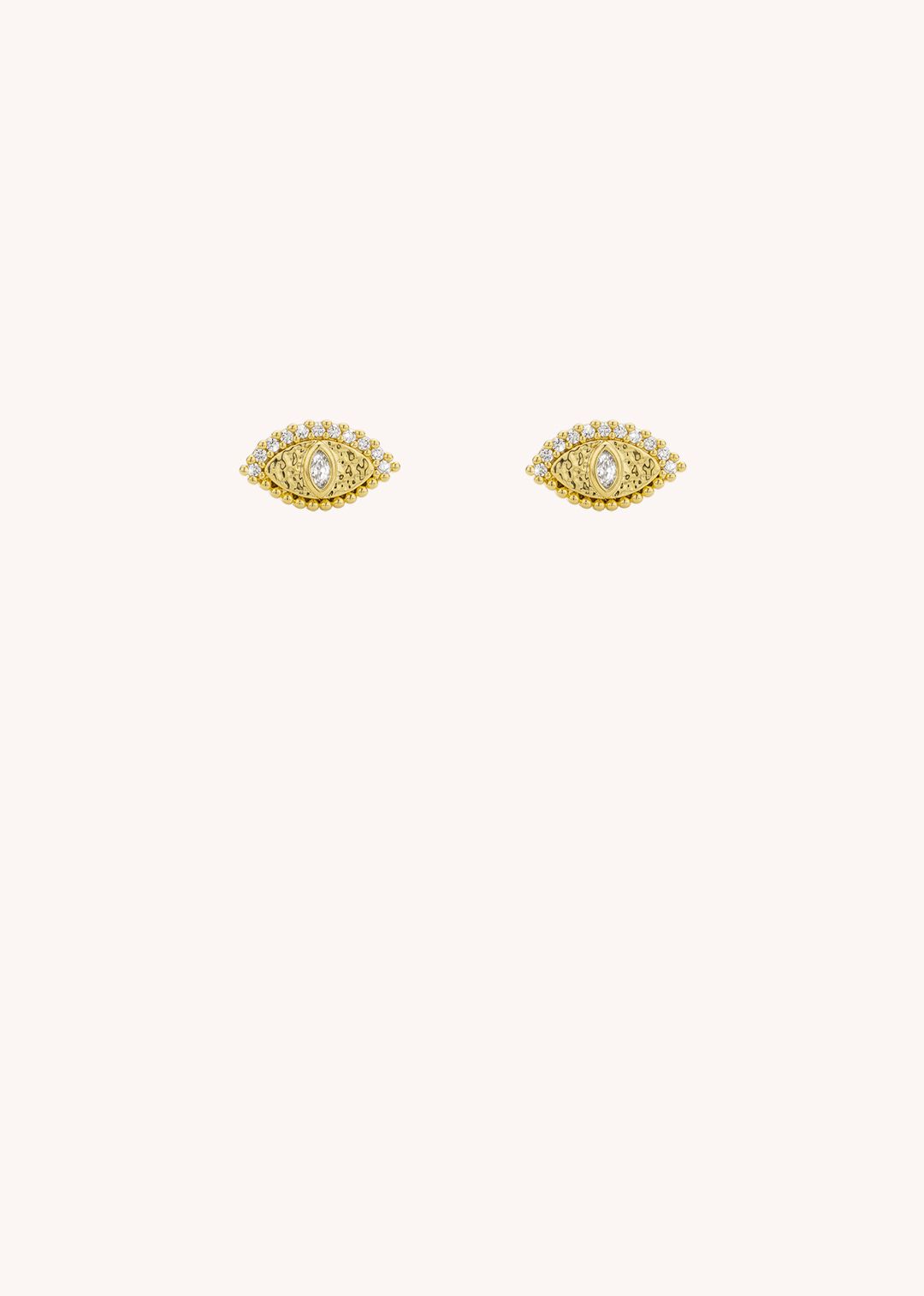 The Tilak earrings , a unique piece of jewelry from Mya-Bay , gilded with 24-carat recycled gold. With their delicate pattern and central crystal, these earrings exude a mystical and elegant allure. Ideal for those looking for original and meaningful pieces, they add a touch of originality to any jewelry collection.