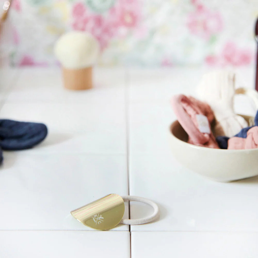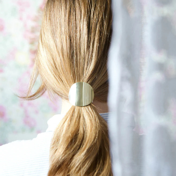 Transform your hairstyle in an instant with this hair tie decorated with a gold plate. As simple as a ponytail, it adds a sophisticated touch to your everyday look, while remaining practical and discreet.