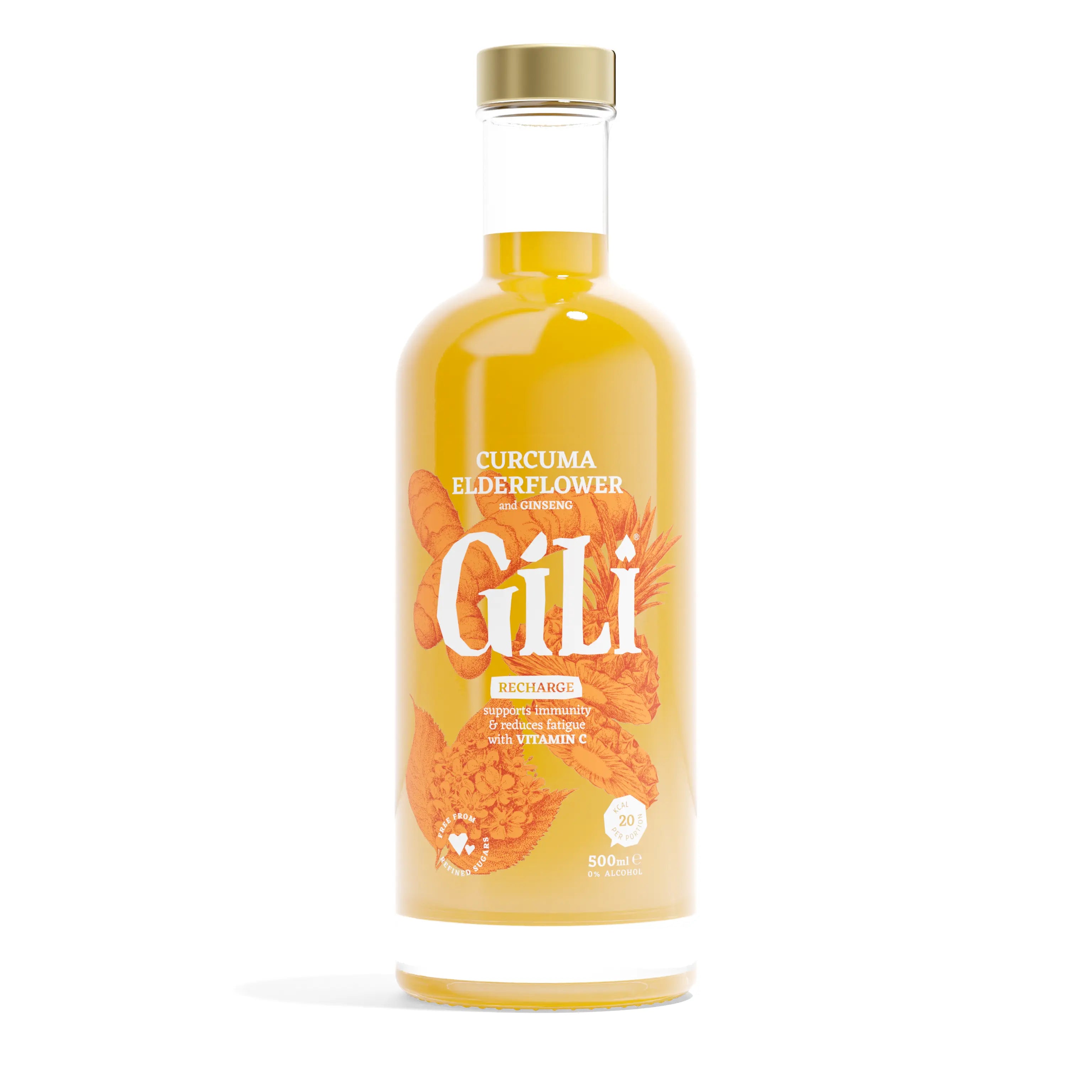 Give your body a real natural boost with the Turmeric & Elderflower Recharge Elixir . Handcrafted from freshly pressed turmeric and fragrant elderflower , this unique elixir combines vitamin C and ginseng to stimulate your natural defenses and help you fight fatigue.