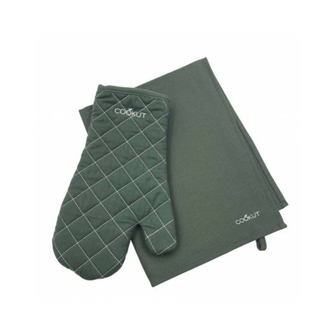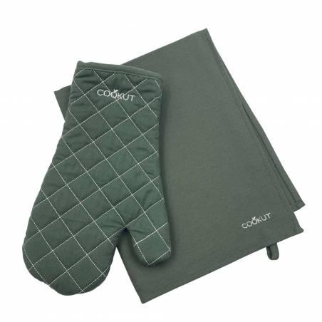 This set of gloves and tea towel is an essential to have in your kitchen. The glove gives you perfect grip on all your dishes, it insulates your from the heat when you take your dishes. The tea towel is ideal for drying your dishes.
