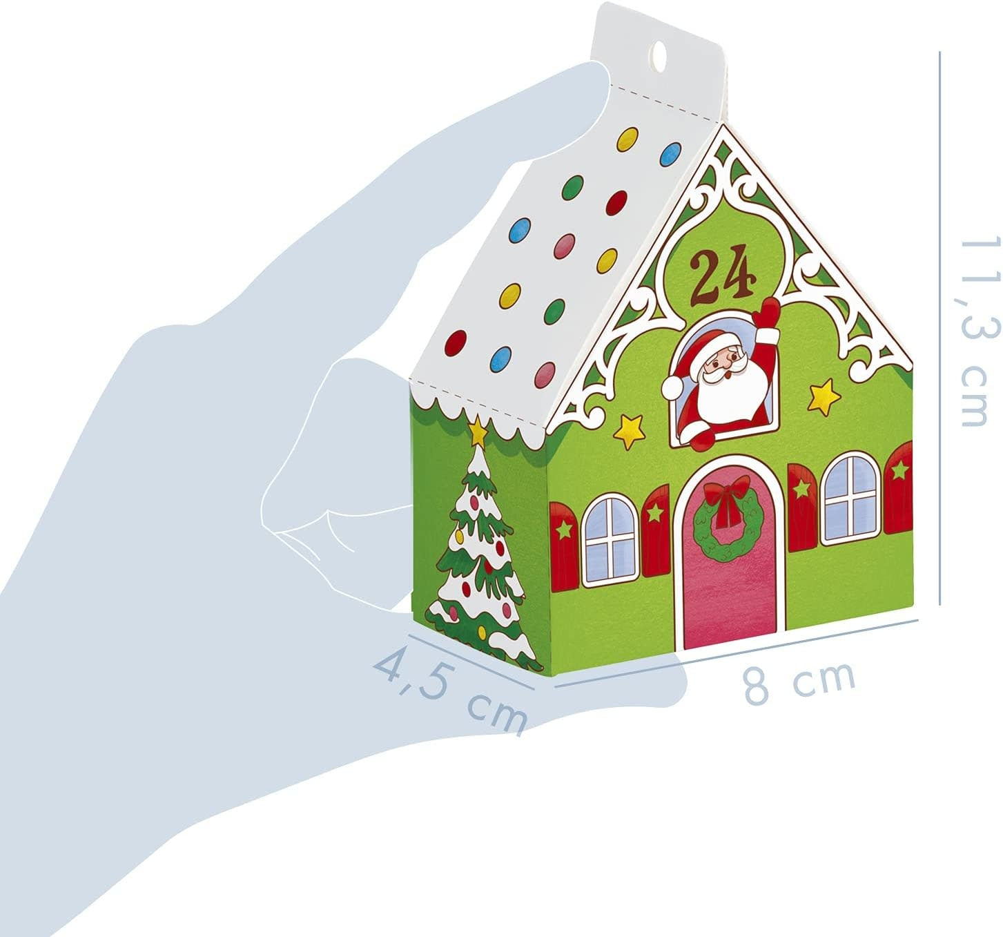 Fill the little chalets with chocolates or candies. You can also hang them on the tree!