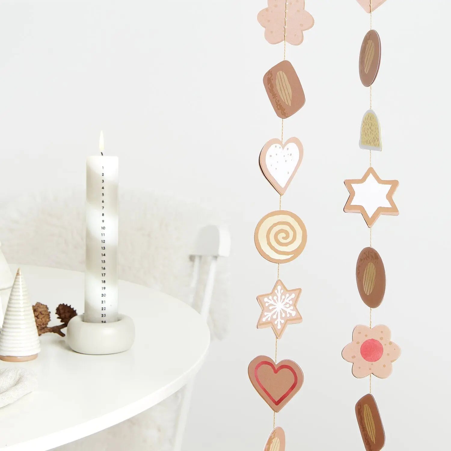 Bring warmth and festivity to your home with this garland featuring Christmas cookie motifs . Each cookie is delicately decorated to create a welcoming and joyful atmosphere, ideal for celebrating the winter season in style.