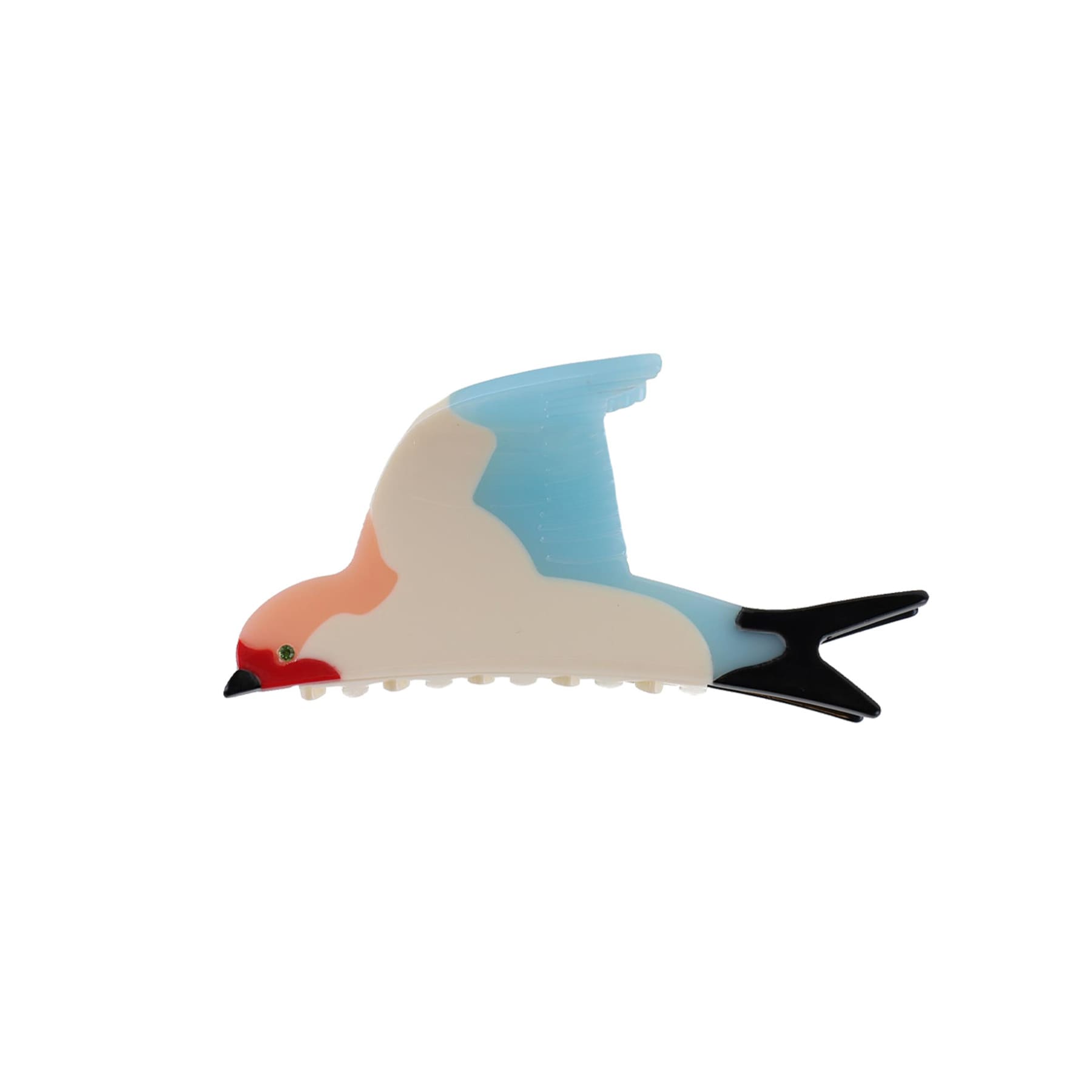 Bring a touch of poetry and originality to your hairstyle with the Blue & Pale Pink Swallow hair clip. Its delicate design and soft colors make it an accessory that is as elegant as it is charming.