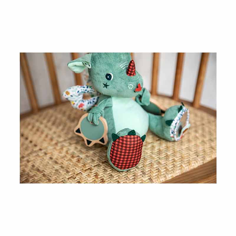 How cute Jo the Dragon is with his plaid fabric....a little mischievous side...even punk! Thanks to its multiple activities, it will awaken the senses of little ones.