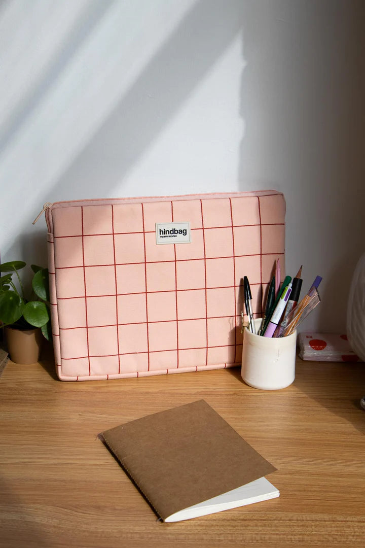 Ava Pink/Red Checkered Laptop Sleeve 15"