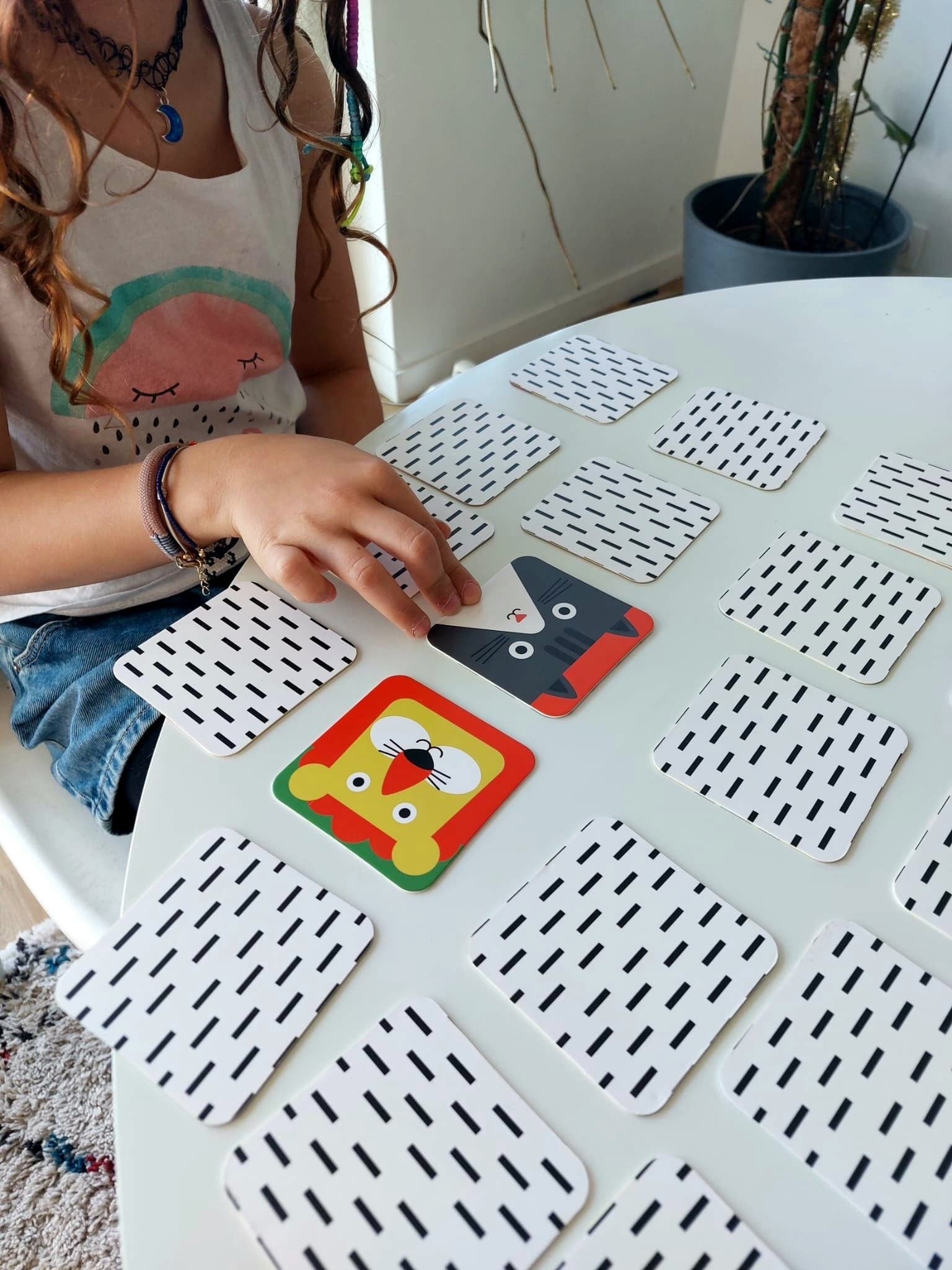 Ideal for travel, use the cards inside the box to find the second matching card and achieve victory.