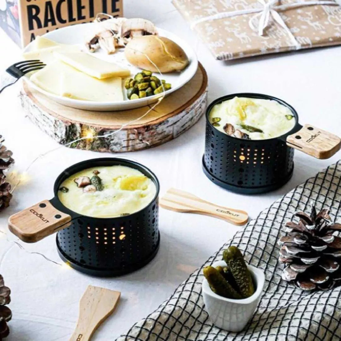 Discover the friendly warmth of Cookut 's Lumi raclette kits, as quick as an electric appliance and as eco-friendly as you want!