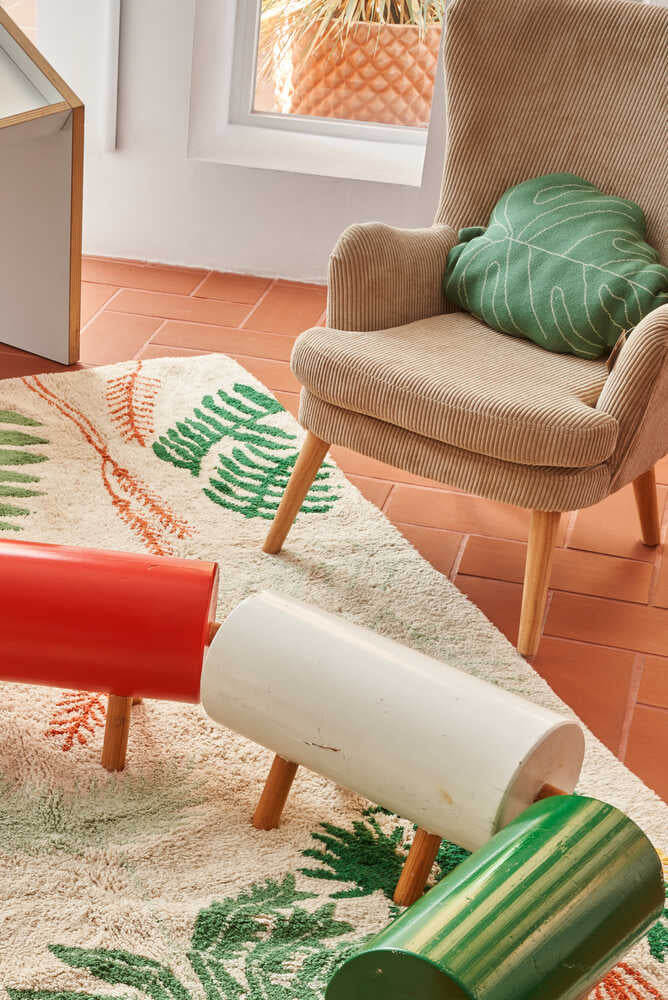Shaped like a monstera leaf, the most fashionable leaf, this cushion will look great in your living room as well as in your toddler's bedroom.
